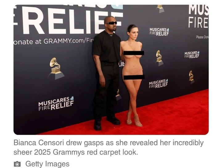 There’s “barely-there fashion,” and there’s the look that Kanye West’s wife, Bianca Censori, wore on the red carpet at the 2025 Grammy Awards: essentially, naked.